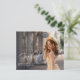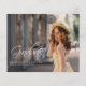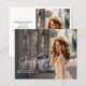 Our elegant budget graduation announcement features two photos of the college or high school graduate. Casual, modern white script appears on an overlay along with a photo of the graduate on the front and back.