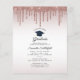 Featuring a modern rose gold glam glitter drip, this graduation party invitation with white and rose gold ombre background is perfect for your special party.