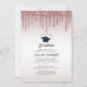 Featuring a modern rose gold glam glitter drip, this graduation party invitation with white and rose gold ombre background is perfect for your special party.