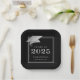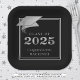 Elegant personalised custom colour CLASS OF 2025 graduation party paper plates with CONGRATULATIONS and your graduate's name accented with a faux metallic silver foil 2025 and graduation cap or mortarboard in your choice of background colour (shown in black) you can change to a school colour or coordinating party theme colour. ASSISTANCE: For help with design modification/personalisation, colour change, transferring the design to another product or would like coordinating items, contact the designer BEFORE ORDERING via Zazzle Chat or makeitaboutyoustore@gmail.com.