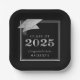 Graduation 2025 Black Faux Metallic Silver Paper Plate
