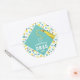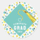 Graduation gift stickers, party favour labels and envelope seals featuring teal blue grad cap with a gold tassel on confetti background. To personalise edit text to add year and otherwise customise.