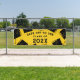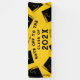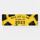 Creative graduation congratulations banner featuring black and gold graduation caps on yellow background. Edit text to change senior class year.
