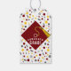 Creative graduation congrats gift tags and grad party favours, featuring maroon cap with a gold tassel on confetti background. Edit text to add grad's name and senior class year.