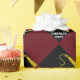 Creative graduation gift wrap and grad party decoration featuring black graduation cap on maroon background. Edit text to add graduate's name and senior class year.