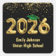 Graduation 2025 Gold Balloons and Green Cap Square Sticker