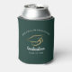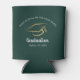 Graduation 2025 High School Grad Party Green Can Cooler you can easily customise with the school name. Featuring a graduate cap with script and modern typography.