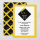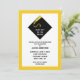 Creative graduation invites featuring classic black cap and gold tassel design pattern on yellow background.