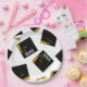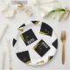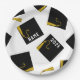Creative grad party plates featuring classic black and gold graduation caps. To personalise edit text to add his or her name and senior class year.