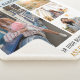 Photo collage gold script graduation party photo blanket for the new grad. Features 4 photos of the graduate, and the word "Congratulations" is set. Add their name, school college, and class year of graduation by clicking the "Personalise" button.