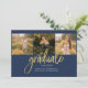 Graduation 4 Photo Collage Script Navy Blue Gold Announcement for class of 2025. Easily customise this by changing the text and replacing the photos with yours. A modern and trendier way to announce your graduation this year!