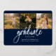 Graduation 4 Photo Collage Script Navy Blue Silver Foil Announcement for class of 2025. Easily customise this by changing the text and replacing the photos with yours. A modern and trendier way to announce your graduation this year!