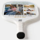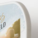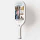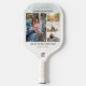 Photo collage gold script graduation party photo pickleball paddle for the new grad. Features 4 photos of the graduate, and the word "Congratulations" is set. Add their name, school college, and class year of graduation by clicking the "Personalise" button.