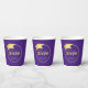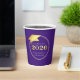 Elegant personalised, custom colour CLASS OF 2025 graduation party paper cups with CONGRATULATIONS and your graduate's name accented with a faux metallic gold foil 2025 and graduation cap or mortarboard in your choice of background colour (shown in purple) you can change to a school colour or coordinating party theme colour in EDIT. ASSISTANCE: For help with design modification/personalisation, colour change, transferring the design to another product or would like coordinating items, contact the designer BEFORE ORDERING via Zazzle Chat or makeitaboutyoustore@gmail.com.