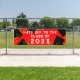 Creative graduation congratulations banner featuring black and gold graduation caps on red background. Edit text to change senior class year.