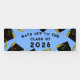Creative graduation congratulations banner featuring black and gold grad caps flying high against a blue sky. To customise edit text.