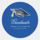 Graduation Cap 2025 Tassel Calligraphy Blue Classic Round Sticker featuring graduation cap illustration with gold foil tassel. Perfect for your graduation party invitations, announcements or thank you cards.