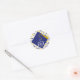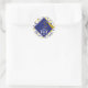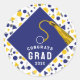Creative graduation congrats party favour labels, gift stickers or envelope seals featuring blue cap with a gold tassel on confetti background. Edit text to add grad's name and senior class year.