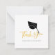 Easily customise this elegant modern graduation thank you card with your name by clicking the "Personalise" button. This card features a graduation cap and a modern script that says "Thank you" in faux gold that is set. Add your custom message on the reverse with your name and class