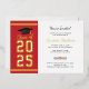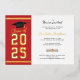 Add your year of graduation, name, and details of the venue with date to this modern bold gold on red white background with black typography graduation party invitation by using our "Personalise" button above