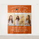Add an elegant personalised touch to college or high school graduation party decorations with a large custom 3 photo collage backdrop. Pictures and all text are simple to personalise, and colours are easy to change with the Zazzle design tool. (IMAGE PLACEMENT TIP: An easy way to centre a photo exactly how you want is to crop it before uploading to the Zazzle website.) The orange and and white design features trendy handwritten script calligraphy, chic modern minimalist typography, and three photos of your choice, such as senior pictures or images from the commencement ceremony. This large graduation party sign can be hung on a wall to welcome guests to the celebration or used as a fun and stylish photo booth backdrop. Congratulations to the graduate!