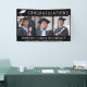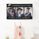 Elegant black graduation party welcome banner and photo backdrop prop to celebrate the graduate featuring "Congratulations" in large white typography on top next to an illustration of a graduation cap, a three photo collage and his or her name, class year and school name in modern white typography. The background and text colours can be edited to match your school colours by editing in the design tool.