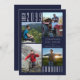 Classic, modern navy and white design complements a a variety of colours in four photos of the graduate. The class year can be changed. The back side has an optional text field to include additional information about the graduate (delete the sample text in that field if not desired).