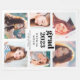 Send your family and friends a modern personalized photo collage graduation card to wow them. This modern template design features six photos for you to change to your own framed in white. In the center in black typography is the word "Grad" with the year, your name and school to personalize. The back of the card is black. Designed by Susan Coffey.
