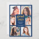 Send your family and friends a modern personalised photo collage graduation card to wow them. This modern template design features six photos for you to change to your own framed in royal blue. In the centre in gold and white typography is the word "Grad" with the year, your name and school to personalise. The back of the card is blue. Designed by Susan Coffey.