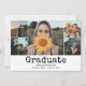 Celebrate this milestone in a way that feels personal, timeless, and full of pride. This graduation announcement card blends classic vintage typography with a warm, modern layout, creating a keepsake your friends and family will truly treasure. The front features a beautifully arranged five-photo collage, capturing meaningful moments from the graduate’s journey, finished with the graduate’s name displayed below in a charming vintage-style font that adds character and nostalgia.