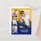 Modern, blue and gold 4-photo collage graduation announcement postcard. Personalise with your graduate's favourite photos and add their name, school, and graduation year. Use Zazzle's design tool to change the background colours to your own school colours.