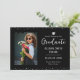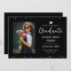 Classic Elegant mortar graduation hat graphic with modern script font graduation announcement postcard. Black and silver design.
