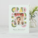 Retro-style, yet modern, graduation announcement photo card that features the word "GRAD" designed with geometric shapes in various colors that form a border around the photo of the graduate. Retro colors—green, dusty pink, mint—add to the card's retro style.