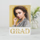 Your graduate's photo will shine in this modern and simplistic, but trendy graduation announcement with faux gold leaf accents and text to surround your own.