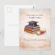 Celebrate a meaningful milestone with this inspirational graduation postcard. Featuring a charming illustration of stacked books, a graduation cap, and a rolled diploma tied with a ribbon, this thoughtful design captures the journey of learning, perseverance, and achievement.