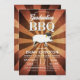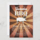 Warm golden Graduation BBQ invitations with pig and graduate hat. Perfect for a graduation parties. Burst background. Easy to customise.