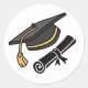 A Black And Gold Graduation Cap And Sticker For Mailings Or Gift Bags