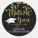 Graduation Black & Gold Confetti Script THANK YOU Classic Round Sticker