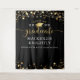 Create a custom, personalised graduation party backdrop, photo op background or drive by sign featuring gold stars, confetti and string lights, calligraphy script title GRADUATE, class year, graduate's name and school, college or university or your custom text with an editable black background you can change to a school colour, coordinated party theme colour or choose from styled graphics backgrounds for a custom look. CHANGES: Change the background colour or any text font style, size, colour, spacing and placement in EDIT. ASSISTANCE: For help with design modification/personalisation, colour change, transferring the design to another product or if you would like coordinating items, contact the designer BEFORE ORDERING via Zazzle Chat or makeitaboutyoustore@gmail.com.