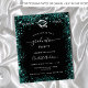 A modern, elegant graduation party invitation. A black background decorated with green, teal faux glitter, sparkles. Personalise and add a name, year and details.