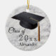 Elegant marble print pattern Graduation Christmas or car ornament. Stone pattern print black and white background with cap and tassel, graduation year and personalized name and school or other text on back.