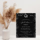 A modern, elegant graduation party invitation. A black background decorated with faux silver glitter dust. Personalise and add a name, year and details.