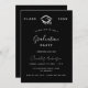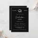 A modern, elegant graduation party invitation. A black background, white text. Personalise and add a name, year and details.