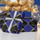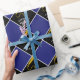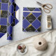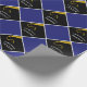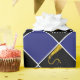 Creative graduation gift wrap and party decoration featuring black graduation cap and gold tassel design on a blue background. Edit text to add senior graduate's name.