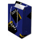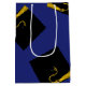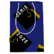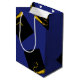Creative graduation gift bag for the grad featuring black and gold graduation cap on blue background. Edit text to add his or her name and senior class year.
