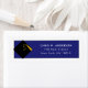 Unique graduation return address labels featuring classic black graduation cap and gold tassel design on a blue background. Edit text to personalize.