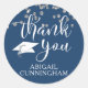 Graduation Blue Silver Glitter Script THANK YOU Classic Round Sticker