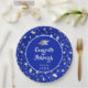 Modern royal blue and silver stars and mortarboard design paper plates personalised with your custom text in an editable handwritten brush script (the sample says Congrats Name) and class year. Contact the designer via Zazzle Chat or makeitaboutyoustore@gmail.com if you'd like this design modified or on another product.
