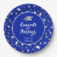Graduation Brush Script Silver Stars Royal Blue Paper Plate