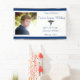 Elegant graduation banner in navy blue and white with Caduceus. Personalise with your favourite photo, university, students name and date.